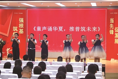 儀式上對推普周相關(guān)工作安排進行部署;與會人員共同觀看推普宣傳片;推普志愿者宣讀倡議書;師生代表表演經(jīng)典誦讀節(jié)目。